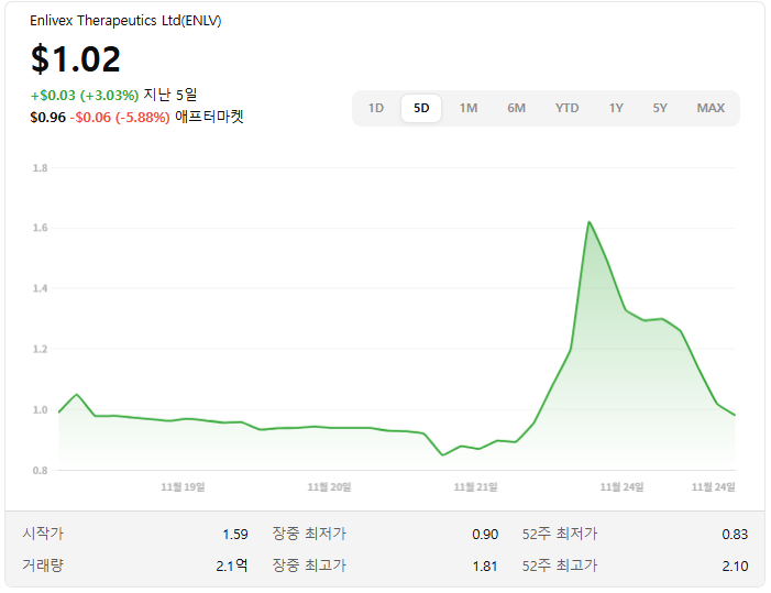 엔라이벡스 테라퓨틱스(Enlivex Therapeutics, ENLV) 주식 분석 엊그제 미국장에서 가장 핫했던 종목 중 하나,